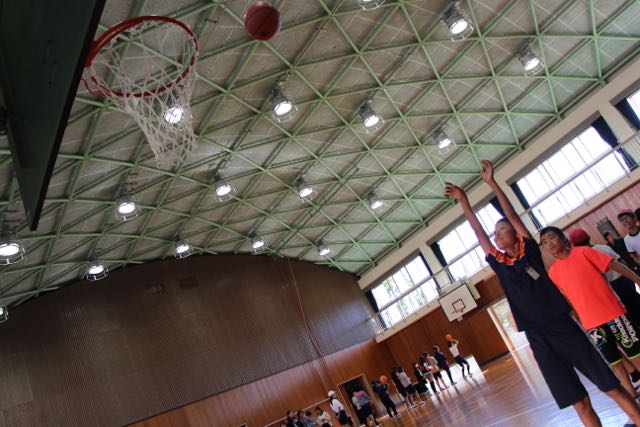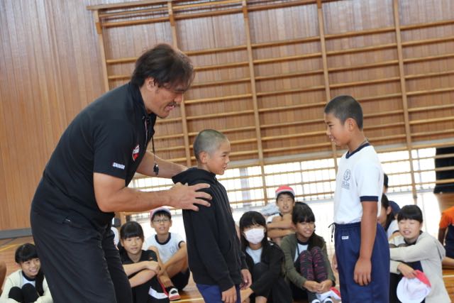 IMG_9555-1和歌山県初のプロバスケットボールチーム「和歌山トライアンズ」の方が来校し、バスケットボールの練習体験をしました。本格的な練習を教えて頂きながら、バスケットボールの面白さを教えていただきました。みんなプロの本場のプレーを見て、とても感動しました。また来て頂きたいですね。和歌山トライアンズ公式ホームページはこちら