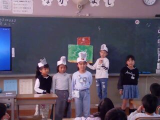 1年2くみのおともだちは、「たのしかった」「ねずみがかわいかった」「ねこのなきごえがかわいかった」とかんそうをいっていました。