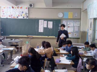 今年度4回目の研究授業。2年2組の国語。教材は「かさこじぞう」の第5場面でした。