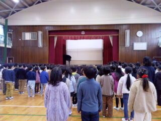 こうかをうたったあと、こうちょうせんせいのおはなしをききました。