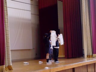 児童会からは、「こんなに大きくなるんだよ」と題して、1年生と6年生の体操服や上ぐつの大きさをくらべてくれ、その成長を実感しました。また、学校に関するクイズも出題してくれ、みんなで楽しみました。