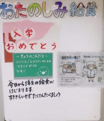 給食は、こどもたちの健康や成長を考えて作られています。これからはじまる給食。好き嫌いせずたくさん食べて、お友達との楽しい給食時間になることを願っています。