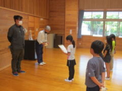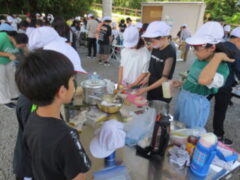 退所式の前には、飯ごうすいさんの後片付けをがんばり、予定より早く終了しました。そして、子供たち自身が作り出した時間で、クラス対抗ドッジビーをして楽しみました。
