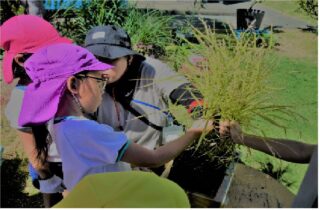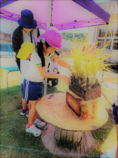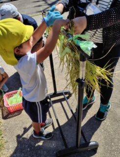 「かたいなぁ~」「できた!」と、一束ずつ丁寧に稲刈りをしました。
