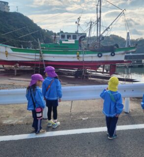 以前漁港に来たときは海に停泊していた船が、陸に上げられていました。近くにいた漁師さんに尋ねると、