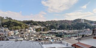 頑張って階段を上り振り返ると、目の前にはさっきまでいた漁港が小さく見える景色が広がっていました。