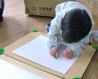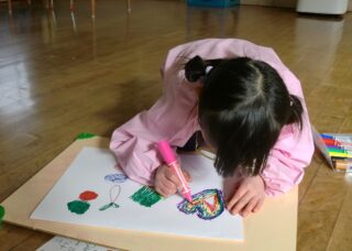 地域の方が漁に出て「アシアカエビ」を獲っているということは、園外保育で漁港を歩いていたときに、漁船に乗せていただいて獲れた魚やエビなどを見せてもらったり、お話を聞いたりして子供たちなりに知っていたのですが、改めて「うみがしごとば りょうしさん」の絵本を見て、みんなで漁師さんについて調べてみました。