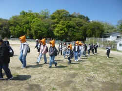 台湾の皆さんの中には、黄色の防災頭巾をかぶって参加している学校もありました。