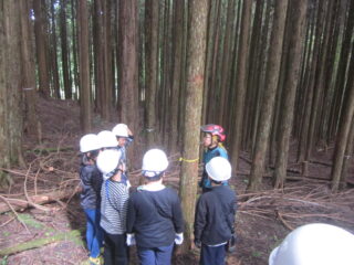 高野山の林業を学ぶため、山の中で伐採の体験をさせていただきました。