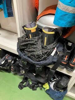 ここは、現場に出動するときに着替えるところ。1分くらいで着替えられるように、