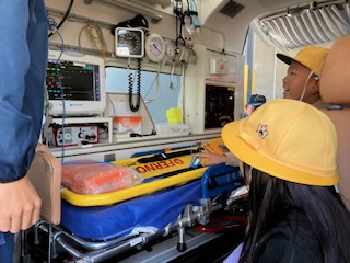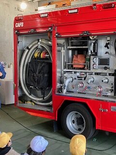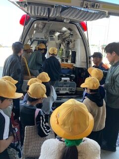 次は救急車。数人の子は「乗ったことある!」。でもほとんどの子は初めて中に入ります。