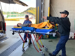 ストレッチャーに載せてもらって、そのまま中に運んでもらいました。