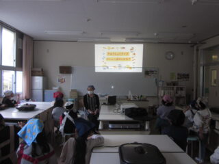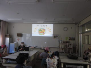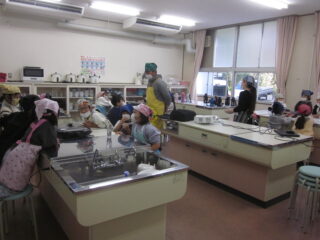 蓋をして焼いていきます。その間、栄養士の先生と勉強しました。