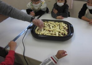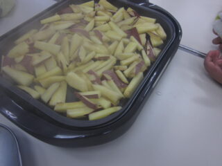 さつまいもがたくさんとれたので、ホットプレートで焼いて食べることにしました。
