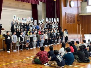 今日の3.4限は、4.5年生の新児童会役員の進行で、6年生を送る集会を行いました。