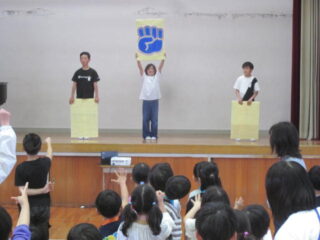 児童会が考えた「じゃんけんゲーム」、「学校を知ろうクイズ」で楽しみました。