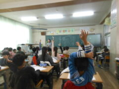 今年度最後のペア交流です。2年生と4年生が行いました。全体で輪になって行うところから、それぞれのペアの人と個別に交流するところと様々でしたが、2年生も4年生も楽しく交流できました。