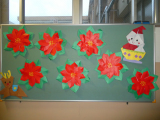 掲示委員会の子供達が、12月らしい飾りを作ってくれました。
