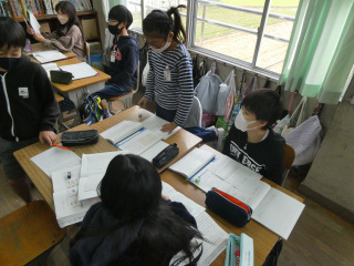 まず、自分達で見通しを持ってどのように、何をどう調べていくか相談しています。