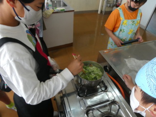 家庭科の時間に、「ゆで野菜サラダ」の調理実習をしていました。