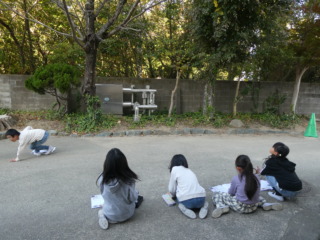 校庭には木が少なくて申し訳ないですが、木の下でしっかり観察してくれていました。