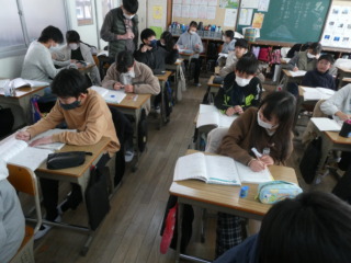 国語の時間に単元テストを行っていました。