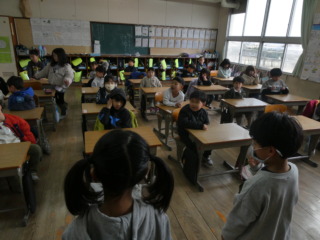 体育の時間、体育係さんが前に出てしっかり準備運動をしていました。