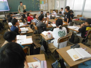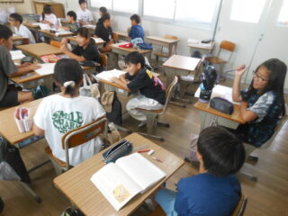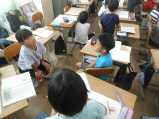 4年生の物語の学習です。この単元はかなり昔からある戦争にまつわる教材です。学習したことを覚えている方もいるのではないでしょうか。今日のめあては「なぜ、ゆみ子は『一つだけちょうだい。』と覚えたのかを考えよう。」です。「お母さんの口ぐせだったから。」と子どもたち。ではどうしてお母さんの口ぐせに?・・・。友達と対話しながら、教材文をしっかり読んで読み取っています。頭をしっかりはたらかせて、想像したり考えたりするこの時間が、子どもたちが学んでいる瞬間です。こんな時間をどんどん増やしていきたいです。