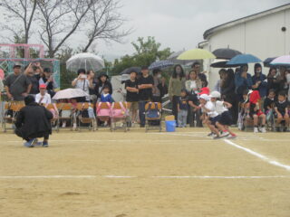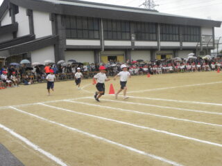 開会時刻にちょうど雨がしとしと降りだしたので、約30分開始をのばしましたが、その後は中断することなく、運動会をすすめることができました。