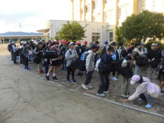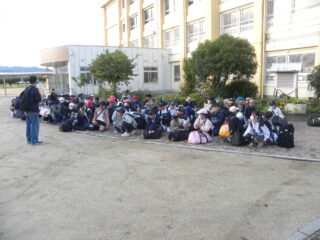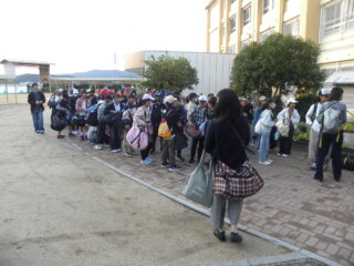 いよいよ修学旅行がはじまります。みんな楽しみにしていた修学旅行です。いろいろなことが学べる旅行です。しっかり見て、聞いて、感じて、学んできましょう。そして、ルールやマナーを守り、安全に帰ってくるようにしましょうと、話しました。さあスタートです。