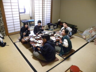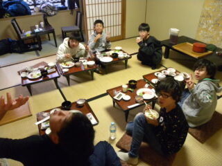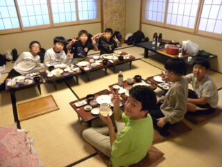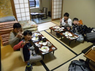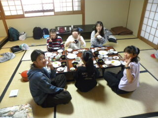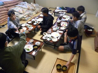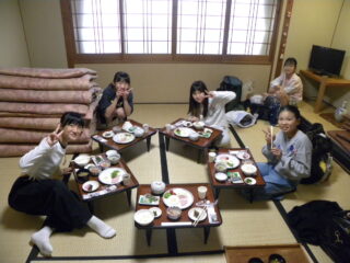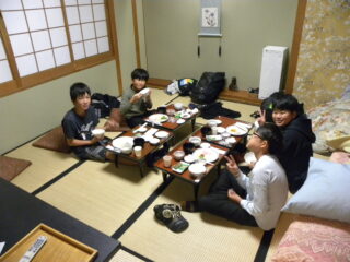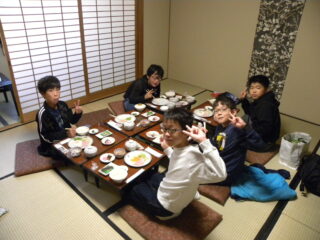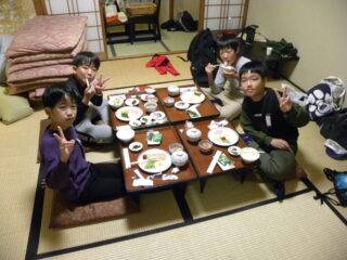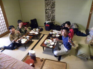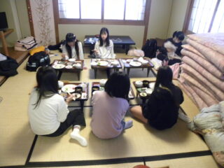 2日目。朝食の時間です。今回はそれぞれの部屋での食事でした。それぞれの部屋で楽しくいただきました。よく眠れてすっきり元気な子、眠れなくてまだ眠そうにしている子など、様々でしたが、「今日も元気に活動できるようたくさん食べましょう。」と言いました。