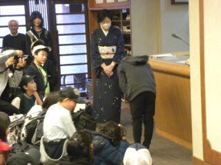 その後ロビーに集合して、お世話になった「橘館」の方にお礼を言って、バスまで歩きます。さあ、2日目のスタートです。