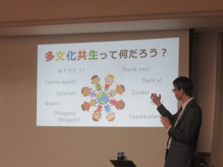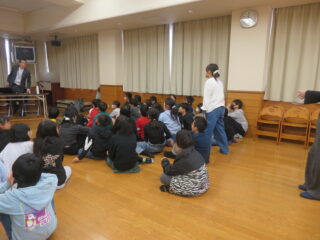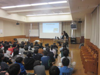 国際交流課の方が来てくれて、5・6年生に「多文化共生」について話してくれました。今回はアメリカの方のお話を聞くことができました。和歌山市にも外国の方が5000人くらい住んでいることや、学校での生活の違いや給食の違いなど教えてくれました。そして様々な違いがあるけれど、根っこは同じ人間なんだということをお話しいただきました。 子どもたちは普段あまり接しない外国の方の話を興味深く聞くことができました。