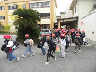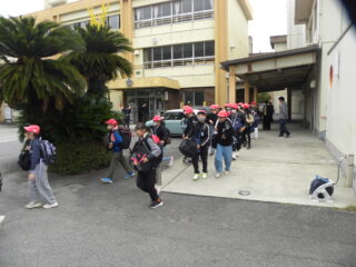 いよいよ加太合宿がはじまります。5年生たちはウキウキした気持ちで集合。楽しみで楽しみで。「友達や先生、お世話になる国際交流センターの方、バスの運転手さんなど、周りの方への気配りを忘れず、自分だけではなく、みんなが楽しい合宿にしましょう。」と伝えました。出発です。