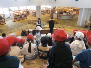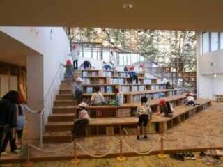 後半は和歌山市立図書館へ。楽しい本がいっぱいで1年生たちはどの本を読もうか、ワクワクしながら探し回っていました。