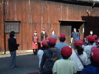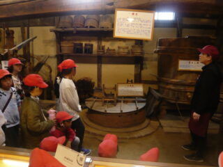 稲むらの火の館と湯浅醤油角長に行ってきました。稲むらの火の館では津波に関する展示や映像などを見学・体験しました。近くには濱口梧陵さんがつくったという堤防があり、みんなで見に行きました。角長では、昔ながらのしょうゆの作り方の説明を受けながら実際の道具などを見せてもらいました。