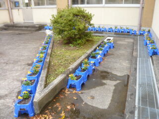 来年4月に入学してくる新入生の入学式にお花のいろどりをと、1年生たちはチューリップの球根とビオラの苗を植えました。1学期にアサガオを育てた植木鉢に上手に植えました。先生の説明をよく聞いて、ひとつひとつきれいな花が咲くように願いを込めていました。入学式には新入生やその保護者の方がこの花を見て、三田小学校の入学を喜んでくれるといいですね。