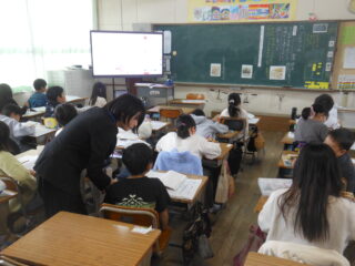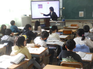 4年生の国語の教材「ごんぎつね」。いたずらきつねのごんの気持ちを考えながら、授業を進めていきます。自分の考えをワークシートに書き込みながら、みんなに発表していきます。途中で本文を読んだり、友達の発表した部分を本文から探したり、国語の授業は本文に書かれていることにもどって考えるようにします。まだ始まったばかりの「ごんぎつね」の授業。しっかり読みを深めて、ごんの思いに近づきたいですね。