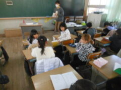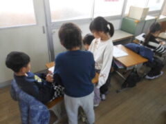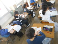 「強い」⇔「弱い」「売る」⇔「買う」など、反対の意味の言葉の学習です。今日は一つ進めて、反対の意味が2種類ある言葉です。「高い」の反対は「低い」。もう一つあります。そう「安い」です。「高い」には二つの反対の意味の言葉があるんですね。ヒントを出し合ったり、先生ヒントをもらったりして、学習を進めていました。いい雰囲気です。