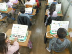 1年生は入学してほぼ1年間たちました。いろんなことができるようになりました。鍵盤ハーモニカもその一つです。「子犬のマーチ」をみんな上手に弾けています。先生のお話も、ほとんどいらない音を出さずに聞くことができています。すばらしいことです。できるようになったことがいっぱいです。