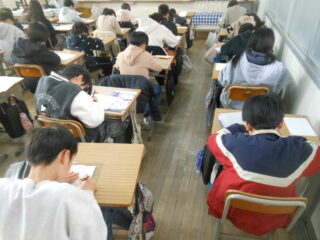 1月8日から16日までが、書初め競書会の清書期間になっています。各学級で取り組んでいます。緊張感でピンと張りつめた教室の中で、6年生たちは清書に取り組んでいました。一画一画丁寧に、お手本を見ながら、真剣な表情です。毛筆に挑戦している子もおり、ピリッとした雰囲気でした。この頑張りが中央展や金賞につながることを祈っています。