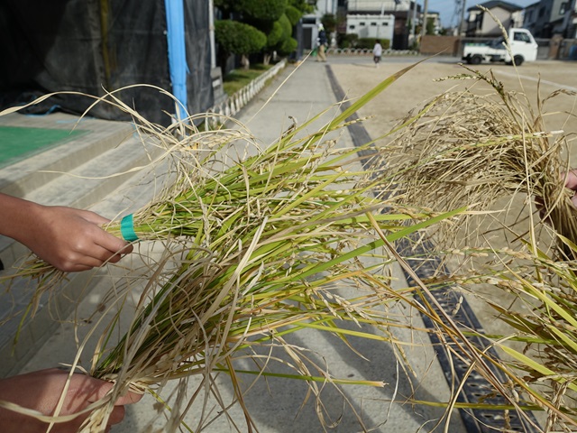 バケツ稲を収穫しました。酷暑にも負けず、なんとかできたよ!