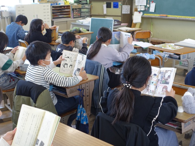 今日は6年2組で校内研究発表がありました。題材は「模型のまち」。高松小学校の先生も参観に来られ、有意義な時間となりました。最近流行りのICTを活用した提案になりました。ご存知ですか?小中高生の50%が本を読まないというニュースが最近ありました。本を読むことは言葉のレパートリーを増やしていきます。言葉が豊かになると自分の表現力が上がり、生活の質も向上します。ぜひ、お家でも本を読める環境を整えてあげてくださいね。大きくなったからといって読み聞かせは遅いと思われがちですが、小学生の内くらいは読み聞かせするのもオススメです。本に触れるきっかけとして活用してみてくださいね。