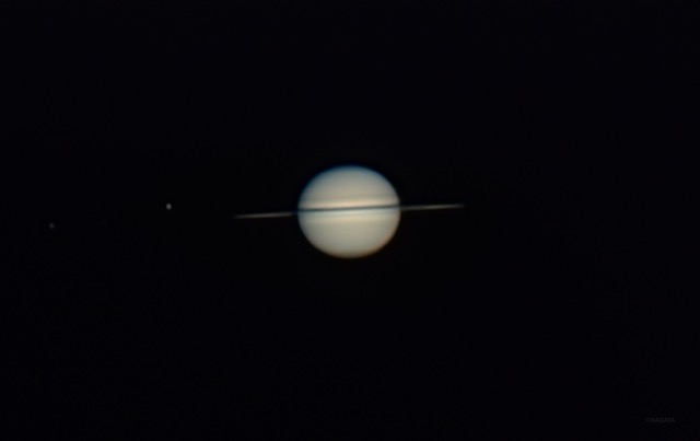 今年もあと2ヶ月となりましたが、今年は15年ぶりに土星の輪が地球から見て水平に見える年になります。完全に水平になると土星の輪の厚みは数百メートルしかないため、輪が消えたように見えます。土星の輪の消失と呼びます。完全に見えなくなるのは今年で3回ほどチャンスはあったようですが、その日以外でもかなり薄くなっているのが、望遠鏡でみると分かります。写真上が今年の土星。比較のために4年前の写真も添えます。見比べると違いが分かるのが一目瞭然ですね。