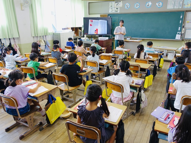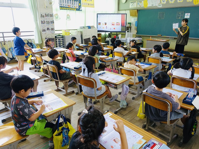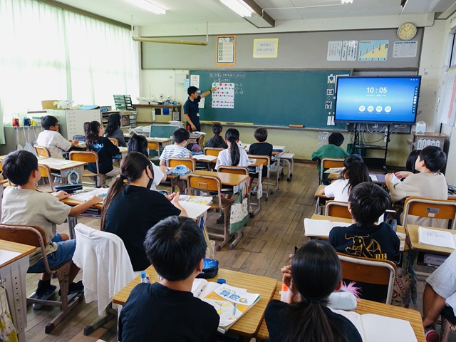 ※実習生による、子どもたちが引き込まれる授業。こちらも熱心な1日担任していました。