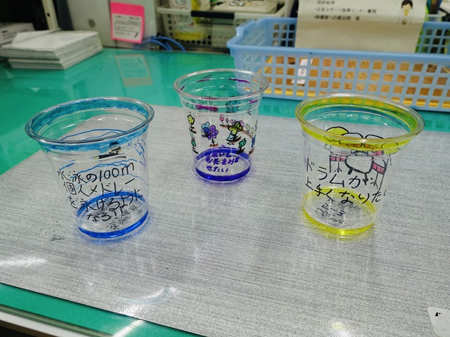 【追記】「みその商店街・第7回POWER OFわかやま ~ミライヲトモス~」が10月4日(土)に開催されます。みその商店街の一部区画の通路両端にLEDキャンドルを並べてくれます(キャンドルロード点灯18時~20時)。4年~6年生までの子どもたちも展示のため、思い思いの夢を描いたコップを作りました。他校の子どもたちの作品と一緒に展示される予定です。