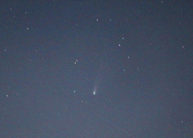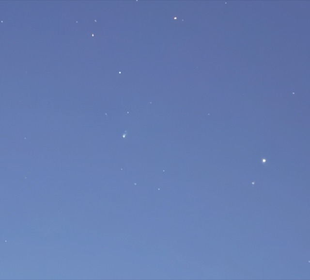撮影:iPhone16Pro ほぼ真ん中に右ななめ上に尾が伸びているのが「レモン彗星」。10秒ナイトモード。