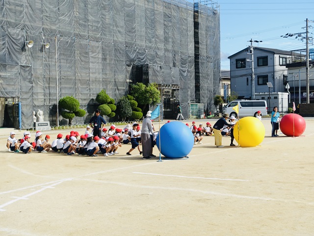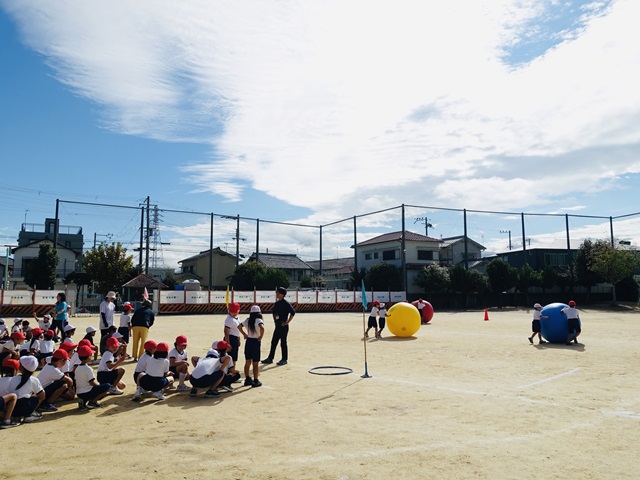 雲が優勢の天気の中、1年生はダンス、玉入れ、2年生は大玉ころがしの練習に挑んでいました。練習なので自分より大きな大玉をゆっくり慎重に転がしていて、頑張っていましたね。1年生のダンスは元気いっぱい!「2025!(にーぜろにーごー!)」と掛け声を合わせていました。一生懸命挑む姿、格好いいですよ。