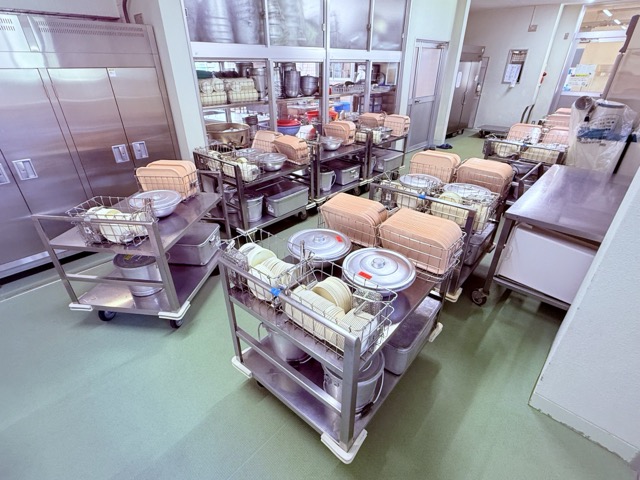 午前中、身体を動かしたあとは、楽しみな給食です。今日も早朝から調理員さんが作ってくださっています。子どもたちの元へ運ばれる前の給食室の様子です。好き嫌いを減らしてよく食べて大きくなってくださいね。