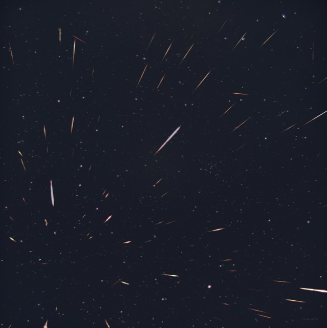 早速、年始に天文イベントがありました。年間三大流星群というのがありますが、夏の「ペルセウス座流星群」、冬の「ふたご座流星群」は毎年このホームページでも紹介していますが、もう一つあります。それが「しぶんぎ座流星群」です。毎年1月3日の夜から4日の明け方にかけて流れる流星群であまり取り上げられにくいのですが、実は毎年結構流れています。下の画像は3時間に及ぶ動画データを流星の軌跡を集めて、1枚の画像にまとめたものです。流星の軌跡を辿るとある一点に集約されるところがあります。そこを流星群の放射点と呼びます。興味深いのは「しぶんぎ座」という星座は今は存在していなくて、昔あった星座の名残になっています。なんだか不思議ですね。来年も必見ですよ。